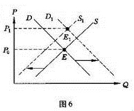 13.圖6中P為價(jià)格,Q為數(shù)量,S為供給曲線,D為需求由線,供求關(guān)系的變化會(huì)影響價(jià)格變化,下列說法與圖示一致的有